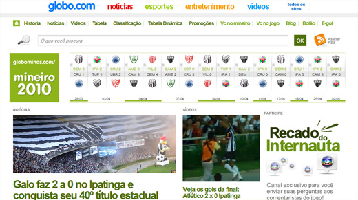O site foi desenvolvido para o torcedor acompanhar o Campeonato Mineiro de 2010.